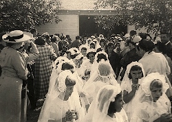 Thanks to the sternness and tenacity of Sister Agnes Ann and the gentle compassion and guidance of Sister Mary Katherine, the young children of Willow Glen all made their first Holy Communion and walked proudly down the aisle of the makeshift church.