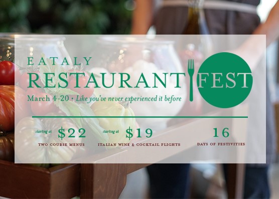 Join us for a Restaurant Fest unlike any other! This March 4-20, you can enjoy restaurant menus starting at $22, Italian wine & cocktail flights starting at $19, and events and festivities at our marketplace.