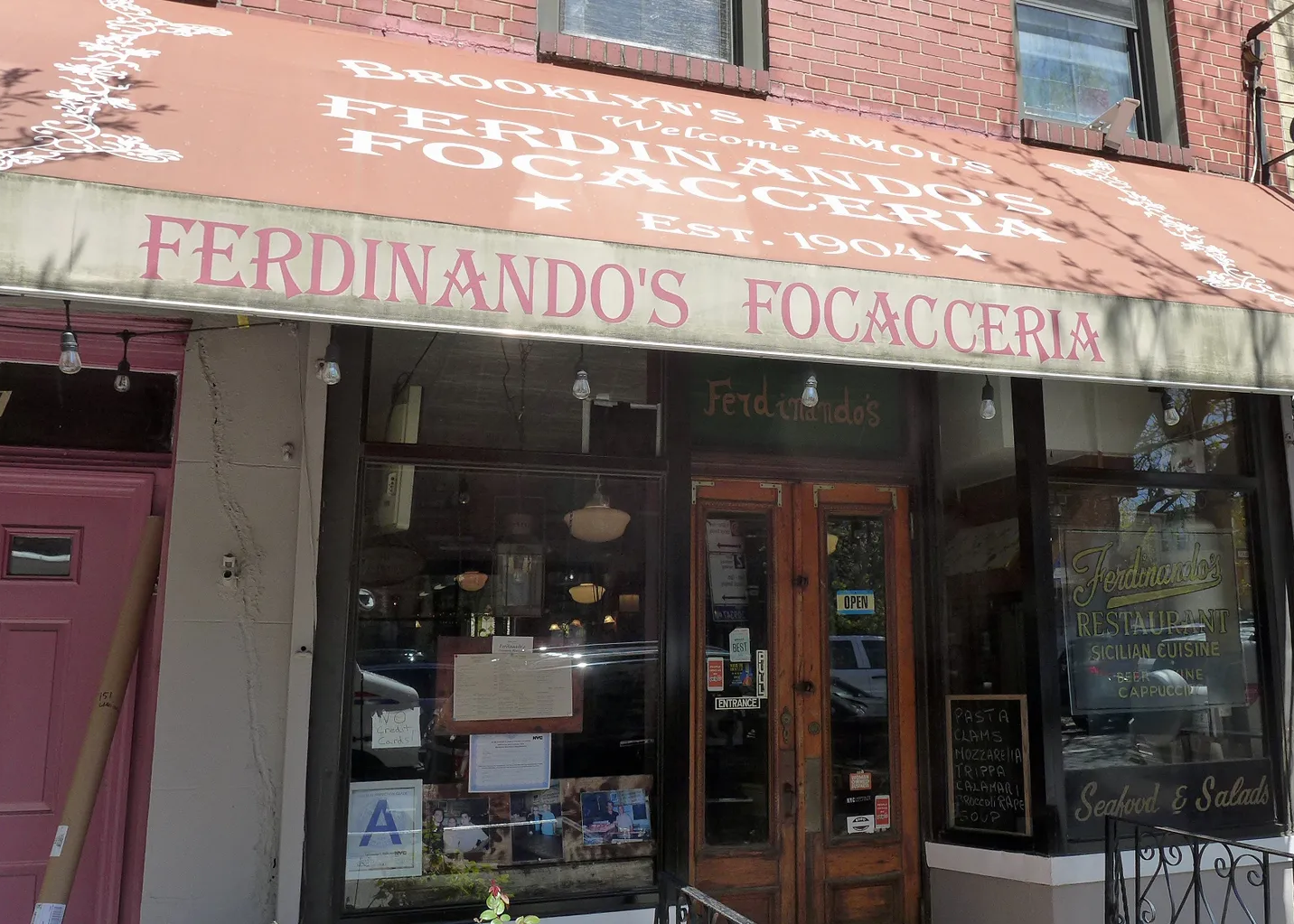 Founded in 1904, Ferdinando’s Focacceria is the city’s oldest Sicilian restaurant and also one of the longest running Italian restaurants in NYC — outdone only by Rao’s (1896) and Bamonte’s (1900). It began as a lunch counter selling small round sandwiches to longshoremen who worked on the nearby Columbia Waterfront docks on the western edge of Cobble Hill.