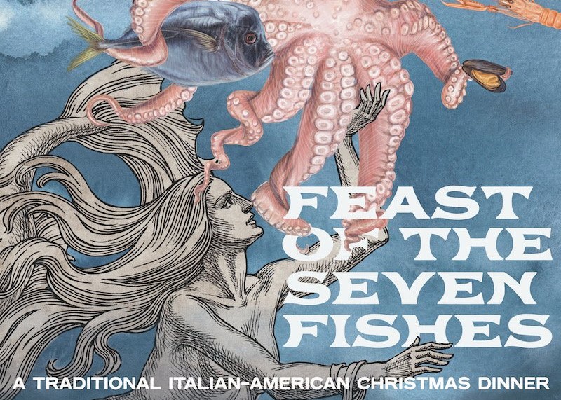 The special Feast of the Seven Fishes menu will start with antipasti of marinated white anchovies with focaccia and calamari spiedini with charred citrus. The primi course will include shrimp ravioli with lemon and shrimp nage and rigatoni al tonno with confit tuna, capers, and tomatoes.