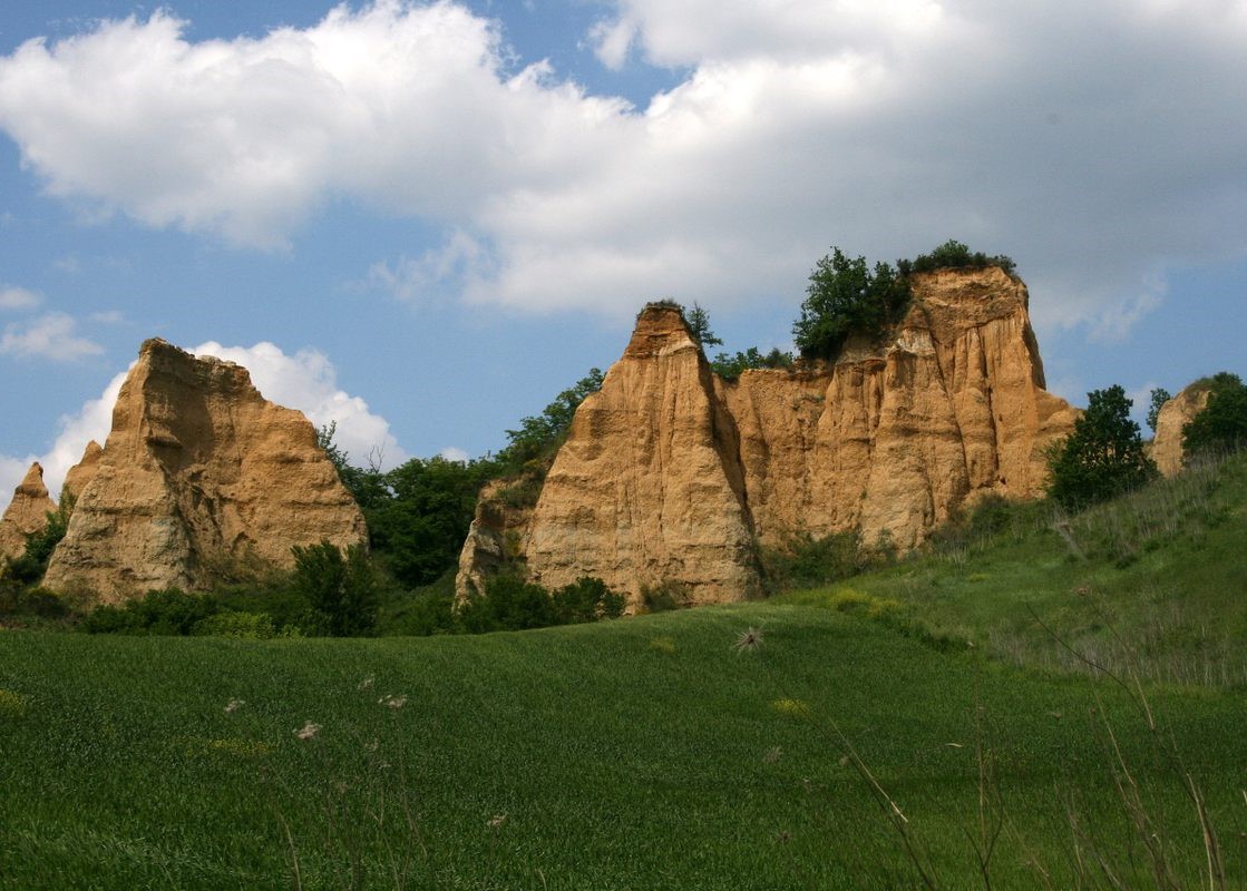 One striking feature of the Balze is its three distinct layers. The top of these mountains is brown because many pebbles and fine sand protect them from erosion caused by rainwater. The middle section is yellow because of clay and silt deposits, which are easy to erode by atmospheric agents. At the base of the mountains, there is a layer of material called scree, which is made of rock fragments and other debris that broke off from the upper layers and accumulated at the base.