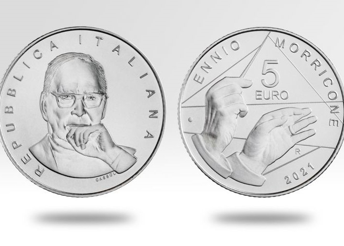 Italy has created a special €5 coin dedicated to the Oscar-winning Italian composer Ennio Morricone who died in Rome last summer. The limited-edition coin, issued by Italy's ministry of economy and finance on 15 June, features a portrait of Morricone as well as an image of the maestro's hands in the act of conducting.