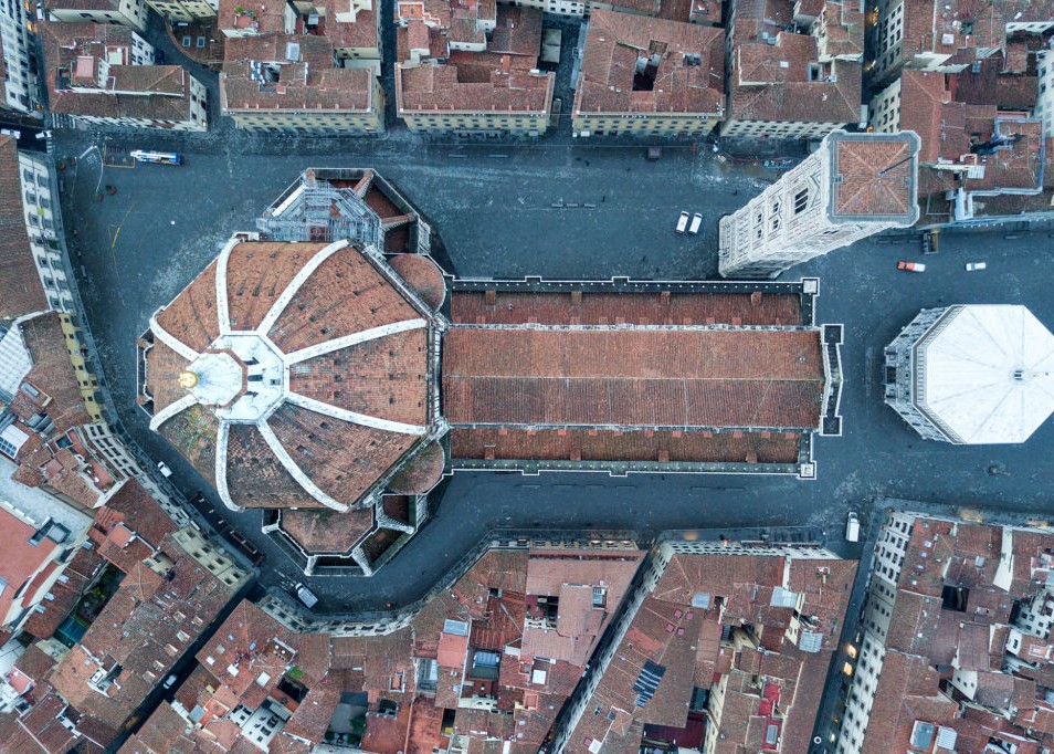 What is especially notable about their quiet images of some of the world’s most famous places, all shot from above with a drone, is that they were taken not during the current lockdown, but on early Sunday mornings in 2014 and 2015, before most people were out and about.