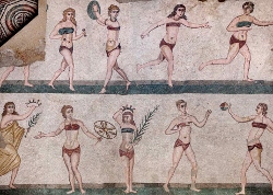 Did Roman women wear bikinis? It would seem so, according to late-imperial mosaics of Villa del Casale in Piazza Armerina (Enna), Sicily. The mosaic floor of one of the rooms of the Villa depicts 10 girls participating in an athletics competition and wearing something very similar to our two-piece costume. Swide is here to tell you about the beauty of this archaeological wonder, made even more special by this scene, which may seem bizarre and anachronistic at first glance.