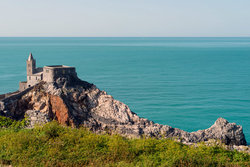 The church of Saint Peter in Portovenere, in the province of La Spezia, Liguria, juts out from a rock spur onto the Gulf of Poets, an area that was dear to great artists such as George Sand, David Herbert Lawrence, and Percy Bysshe Shelley.