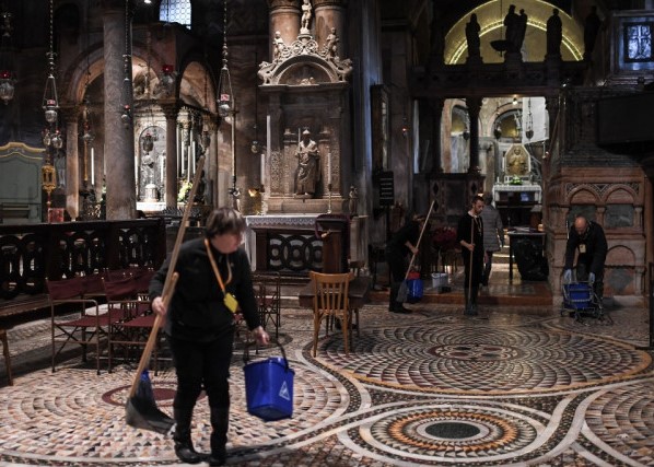 A 1.2 metre (four foot) high glass barrier has been suggested as a way to protect the world-famous monument and its priceless mosaics from the acqua alta, or tidal flooding, which happens regularly in the lagoon city. The basilica's famous coloured marble and gold-leaf mosaics were swamped with sewage and the crypt left under a metre of corrosive salt water during the record flooding, which peaked at 1.87 metres (six feet) on 12 November 2019.