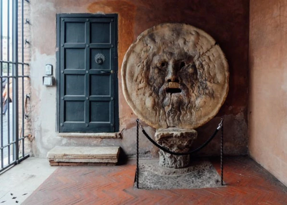 2) Put your hand inside the Mouth of Truth. According to the legend, the Mouth of Truth could bite the hand of liars. The ancient mask became famous all over the world thanks to the movie Roman Holyday (1953) with A. Hepburn and G. Peck, which is on the wall of the pronaos of Santa Maria in Cosmedin.