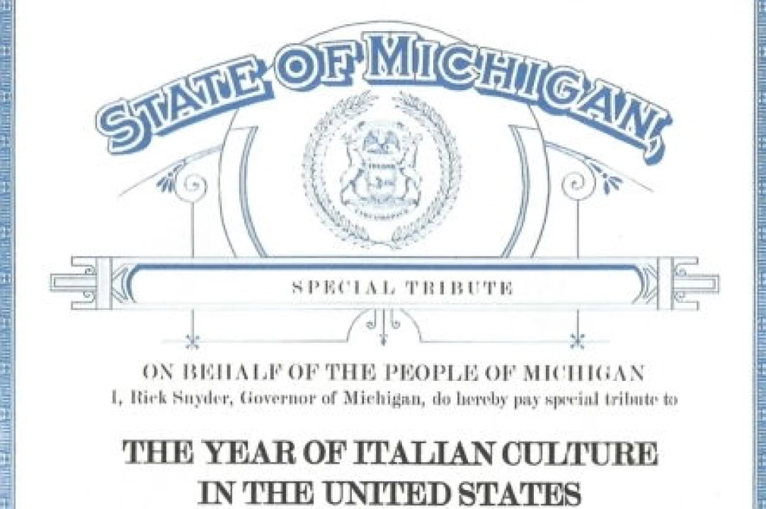 Il Governatore dello Stato del Michigan Rick Snyder ha emanato la Proclamation sull'Anno della Cultura italiana negli Stati Uniti 2013.