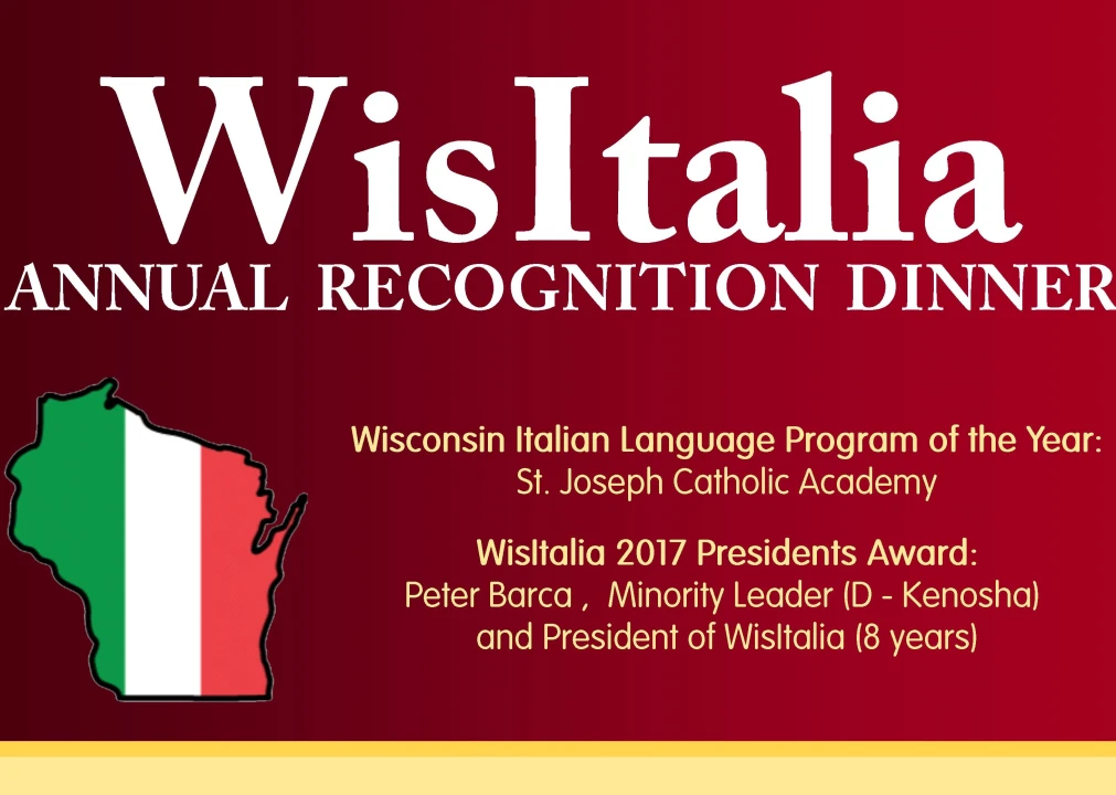 Cari tutti, On behalf of the Officers and Directors of WisItalia I would like to invite you to the 2017 WisItalia Italian Language Program of the Year award event on April 2, 2017. We will be honoring St. Joseph Catholic Academy (SJCA) in Kenosha WI. At SJCA Italian is taught beginning in 7th grade through senior year of High School. AP Italian s in the planning in the next two years.
