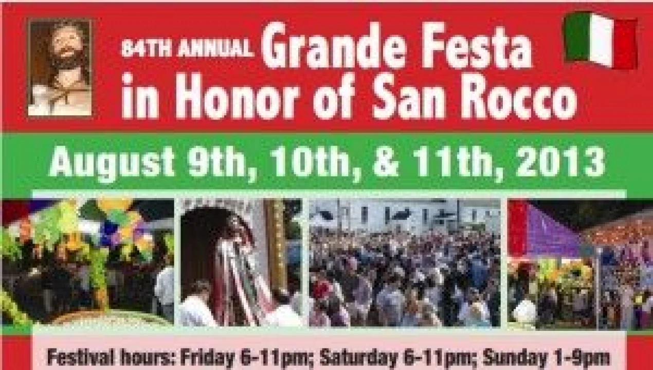 Festivities begin on Friday August 9 at 6:30PM, with a procession led by the statue of Saint Rocco followed by musical entertainment by the "Keep it Real Band" (formerly the New Life Band). Saturday night starting at 7:00 PM with "Beatle Juice" a tribute to the greatest bands of all time, the Beatles.