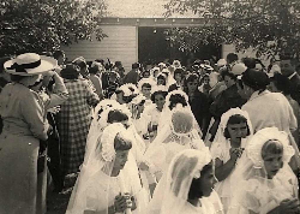 There were no stained-glass windows or elegant trappings in our temporary church, but what we lacked in decorations we more than made up for in devotion and spirit. The boys looked angelic in white jackets and ties, and the girls, in white veils and satin white dresses, resembled little brides as we strode down the church aisle.
