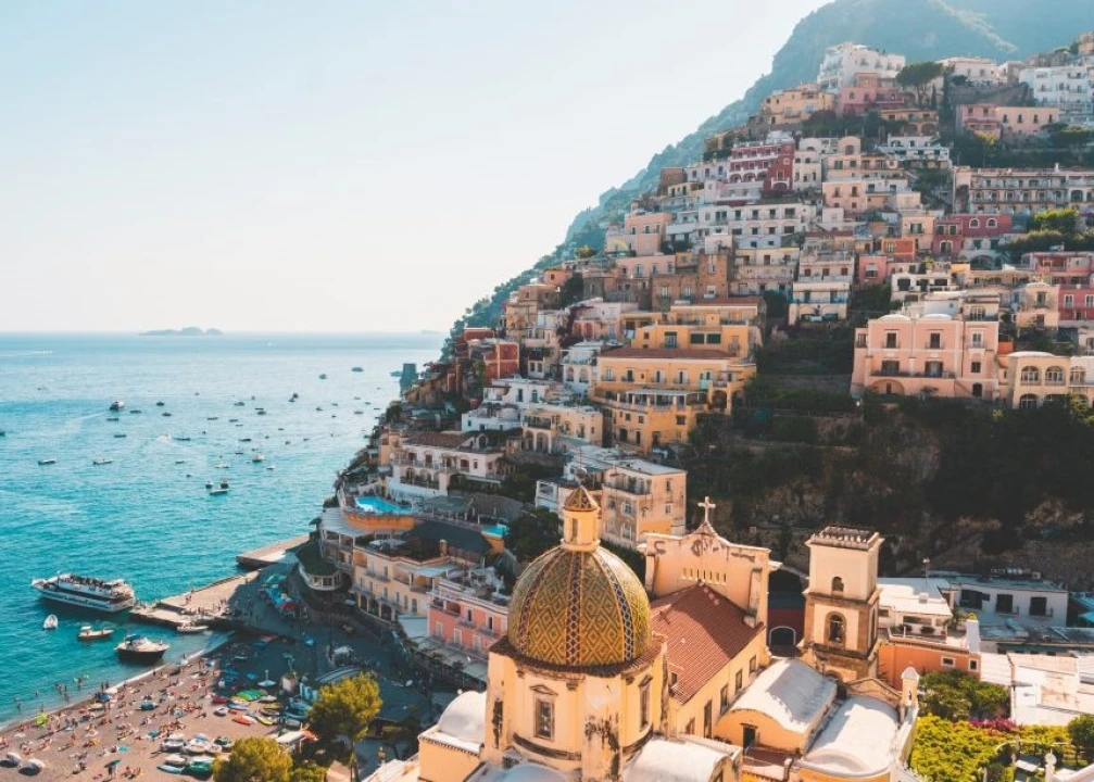 Andrew arrived by boat, but it is more customary these days to approach this shattered shore on the shin of Italy’s boot by car from Naples. It’s not a trip for the faint-hearted: twisting single roads wind their way over and around sharp cliff faces, with nothing but the amethyst water of the Mediterranean ready to catch you.