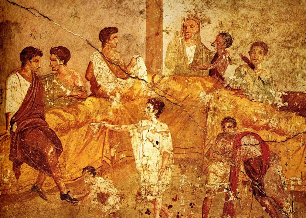 How did the invitation reach an emperor (or any VIP), since engraved greetings had not yet been invented? “For an intimate party at a wealthy Roman’s mansion, it was customary to have nine guests to represent the Nine Muses,” explained Mr. Coletti. “Slaves or servants would be sent as messengers to an individual’s residence to personally invite him.”