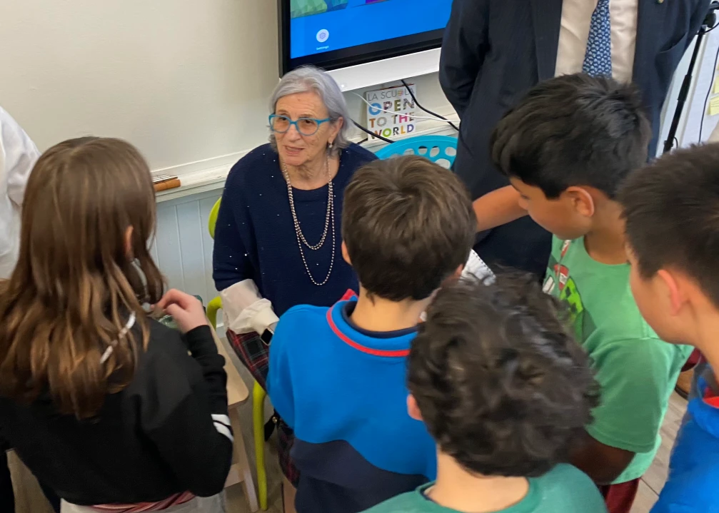 On Jan. 27. 1945, Andra Bucci watched the Red Army liberate the Auschwitz concentration camp. Now, 75 years to the day, Andra recounted that moment and other harrowing personal stories of surviving the Holocaust with her sister during a two-hour talk with our middle school students on Jan. 27. Valentina Imbeni, head of school, and Lorenzo Ortona, Italian Consul General, served as translators.