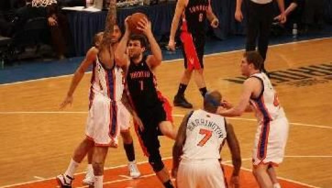 The Italian froze Al Harrington with a shot fake, drove the paint aggressively, and threw down a one-handed jam over the Knicks' perennial double-double machine. This, of course, sent the Raptors' enthusiastic bench into a wild frenzy.