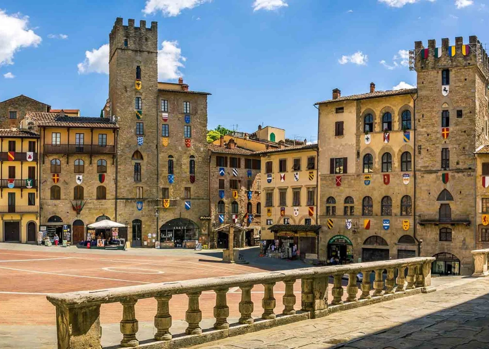 Located in central Italy southeast of Florence, the town of Arezzo has a population of 99,199 as of 2019. The town is the center of agricultural trade in Italy. Its industries include clothing, gold, jewelry and machine.