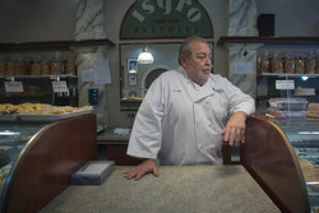 Gus Sarno still makes cakes in the basement of the South Philadelphia rowhouse his grandfather bought in 1904 and turned into Isgro Pastries. He still stacks cookies into boxes at the dining room table where his family ate supper 60 years ago when the doorbell to the shop wasn't ringing.