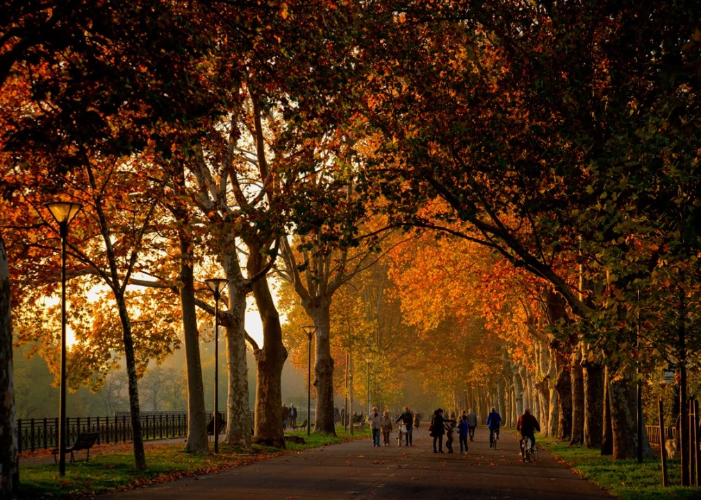 Strange to say, but even cities can give you quite romantic landscapes during the autumn. The wind lashing against the trees in the parks, the wide alleys turning into huge colourful carpets… In the historical centres, men and women of all ages go for a long stroll, seizing the warmth of the last rays of sun, while groups of children run after each other on the lawns of the public green areas, carefully monitored by an army of moms.