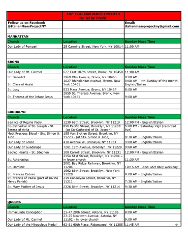 Puoi descrivere meglio il tuo progetto? Tra le cose che fate c'è un elenco delle Messe italiane nell'area di New York, giusto