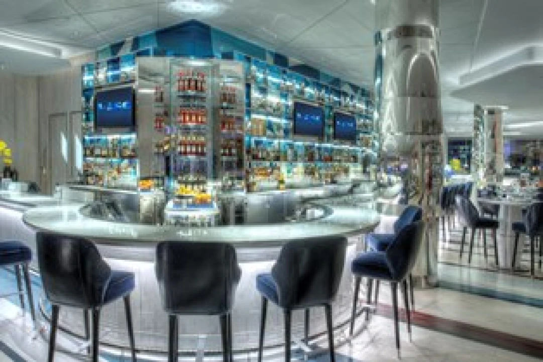The space formerly home to Circo reopened in April as a gleaming tribute to Italian Futurism, with arched windows showcasing the fountains' eruptions and a patio where guests can savor a front-row seat. Designed by Munge Leung, the restaurant includes a mosaic of Milan at the entrance and a marble mixology counter that turns out food-focused cocktails like the Sgroppino, a prosecco-based creation with a frozen sphere of prosecco, lemoncello, lemon sorbet and cocoa butter.