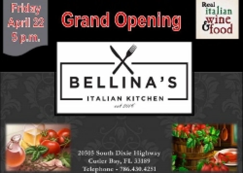 Bellina's Italian Kitchen will be celebrating its grand opening at Southland Mall in Cutler Bay, FL on Friday, April 22nd at 5 pm. Bellina's is more than a great pizzeria, it serves authentic Italian, home-made cuisine. Customers will soon enjoy delicious pizzas, pasta, and more for not a lot of dough! Bellina's makes all their pasta, bread, gelatos, pastries and cookies in-house daily. It is sure to be a crowd pleaser!