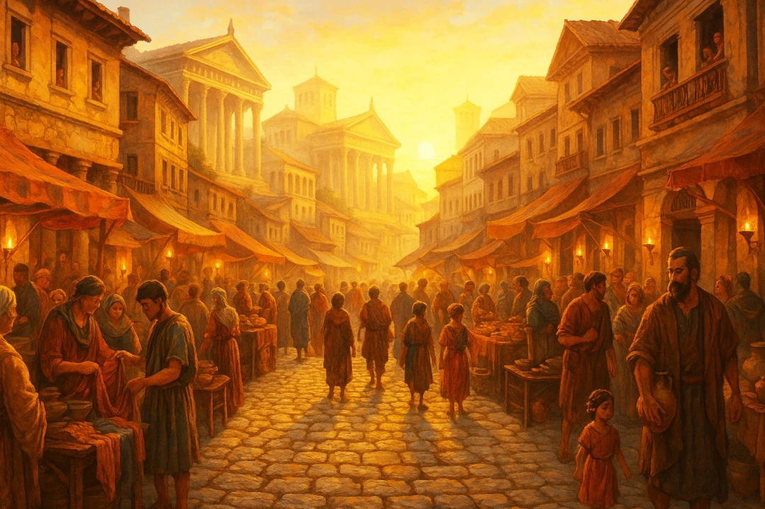 The name Suburra – or Subura in Latin – likely derives from the expression sub urbe, meaning “below the city.” The reference was both topographical and symbolic, because the neighborhood sat in a valley beneath the hilltop temples and civic buildings of the Forum, physically lower, and often seen as morally so as well.
