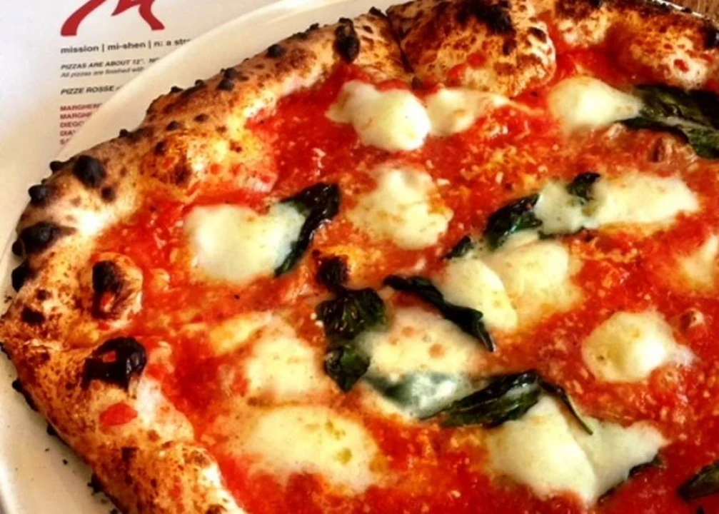 Neapolitan pizza isn’t a delivery system for pepperoni and sausage. The dough is very soft, it’s cooked so quickly in wood-burning ovens that the edges puff and bubble, and the toppings are minimal, usually just uncooked crushed-tomato sauce and a few circles of fresh mozzarella, preferably made with sweet buffalo milk, maybe a few basil leaves sprinkled here and there.