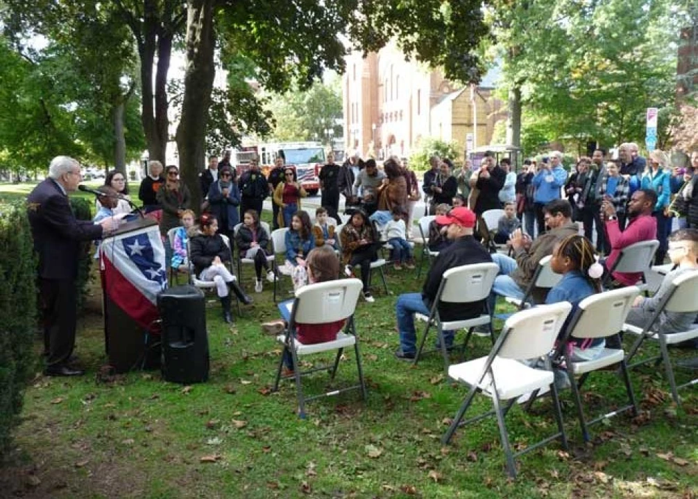 Always a charming public event in Bloomfield, it attracted a small gathering of fourth-grade essayists, parents, principals, police officers, firefighters and school district officials, including Bloomfield Superintendent of Schools Sal Goncalves. The young essayists had participated in a UNICO contest about Columbus.