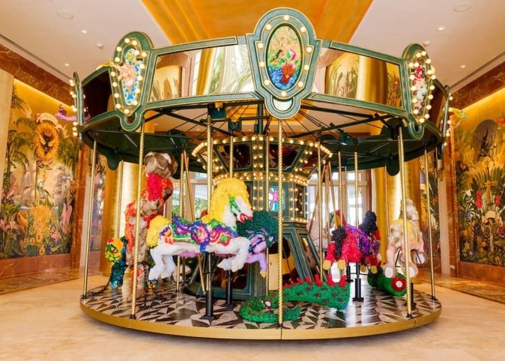 Considering today's political circus, de Nieves’s artful way of flipping the narrative via a medium as joyful as a carousel is both ambitious and wondrously transcendent. When I Look in to Your Eyes I See the Sun is a fully functioning carousel (though intended for viewing only) that will be displayed at the Faena Hotel in Miami Beach from December 5 to 10. After that, it will travel around the world with Bulgari.