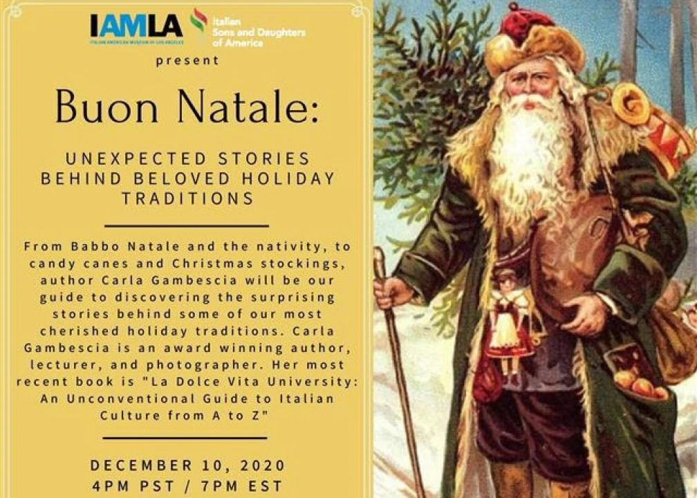 From Babbo Natale and the nativity, to Christmas stockings and candy canes, author Carla Gambescia will be our guide to discovering the history of some of our most cherished holiday traditions! There is no cost to participate. How to watch this event: On December 10 at 4pm PST/ 7pm EST a link will be posted to the live stream on IAMLA facebook page.