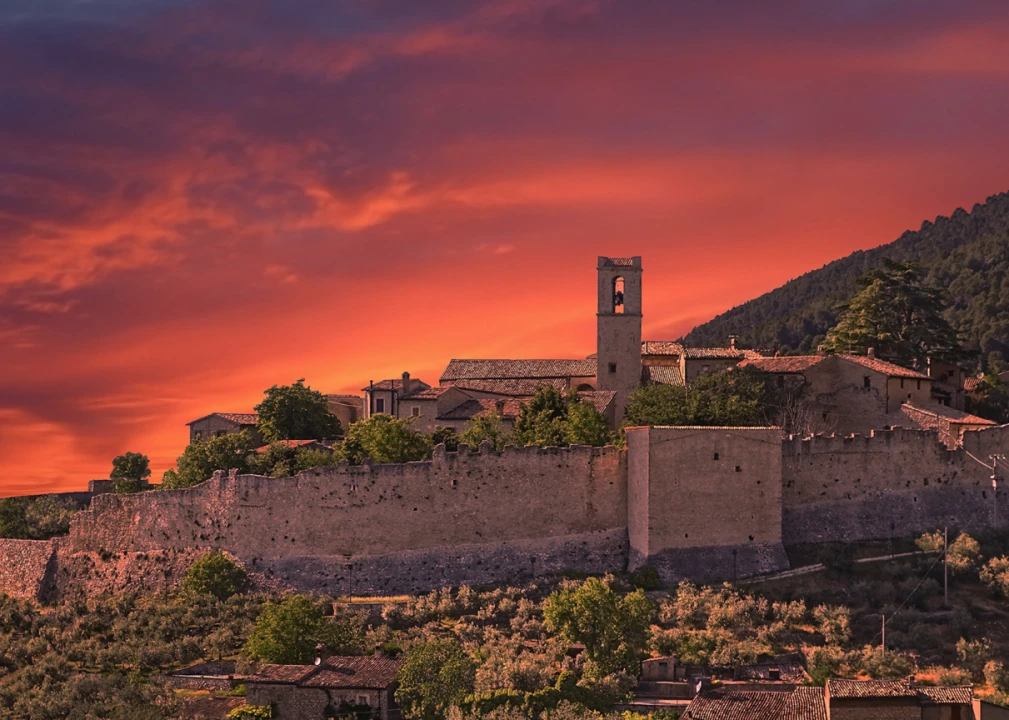 Castello di Campello Alto in Umbria is a fortified settlement that rises on top of a hill and overlooks the Spoleto valley. Dating back to the fourteenth century, today you can admire much of its original structure still intact.