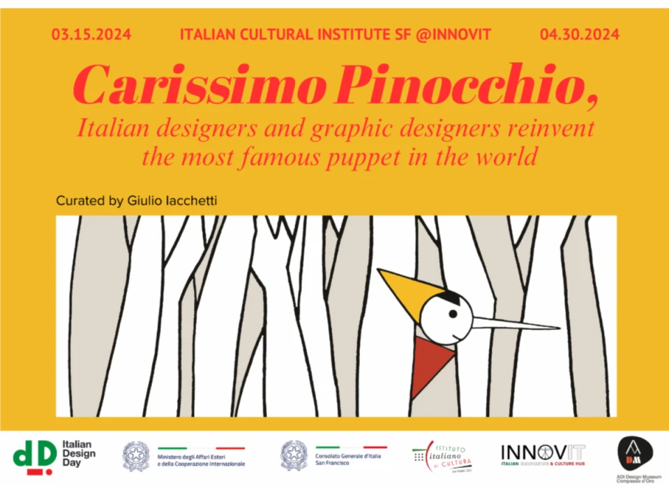 On view March 15 through April 30, M-F 10am-16:30pm by appointment (email here) and during IIC events. Italian Cultural Institute of San Francisco - 710 Sansome Street San Francisco, CA. 140 years after the first edition of The Adventures of Pinocchio, ADI Design Museum celebrates the most famous puppet in the world with an exhibition dedicated to him.