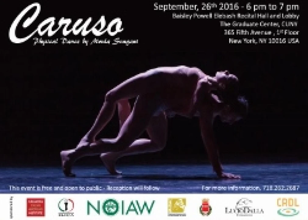 Monday, September 26, 2016, 6pm. Caruso: Physical Dance by Mvula Sungani and Italian American Faculty and Staff Advisory Council to the John D. Calandra Italian American Institute Annual Reception. The Italian American Faculty and Staff Advisory Council (IAFSAC) to the John D. Calandra Italian American Institute and the Italian Language Inter-Cultural Alliance in collaboration with the National Organization of Italian American Women present Caruso: Physical Dance by Mvula Sungani.