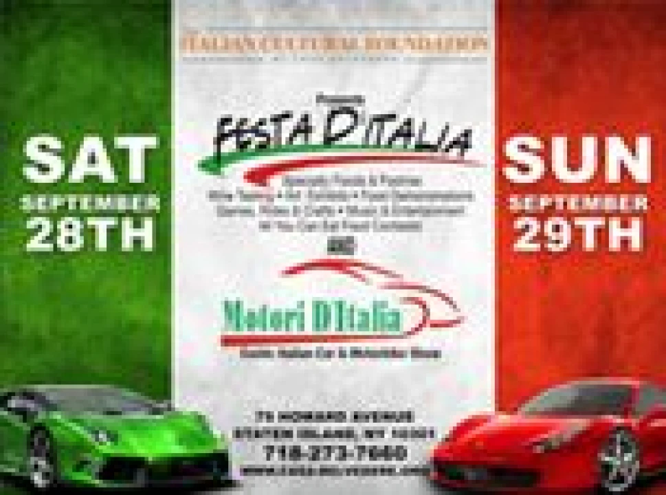 The Italian Cultural Foundation at Casa Belvedere on Staten Island kicks off its fall calendar in a big way with Festa D'Italia and Motori D'Italia—one weekend, two great events! Festa D'Italia will feature specialty foods and pastries, wine tasting, art exhibits, food demonstrations, games, rides and crafts, music and entertainment, all you can eat food contests. Motori D'Italia will display exotic cars and motorbikes!