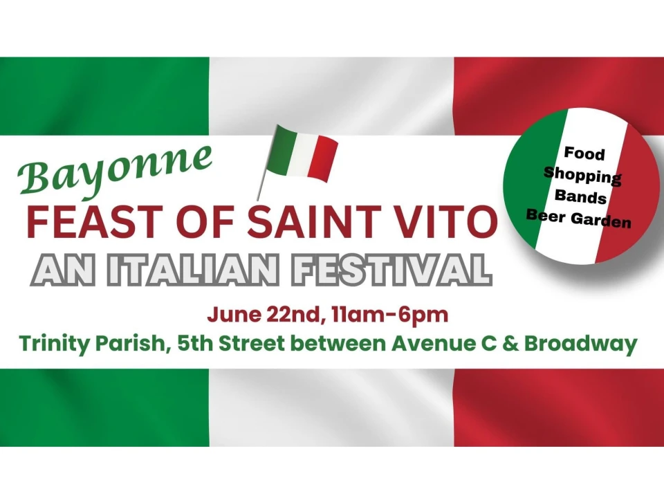 The feast honors St. Vito, also known as Vitus, a Sicilian martyr who lived from 290 to 303. “We are looking forward to bringing back the tradition of Italian festivals to Bayonne,” Cindi Sisk-Galvin, Vice President of the Bayonne Heritage Association said, inviting the community to attend and enjoy Italian food and entertainment on the first Saturday of summer.
