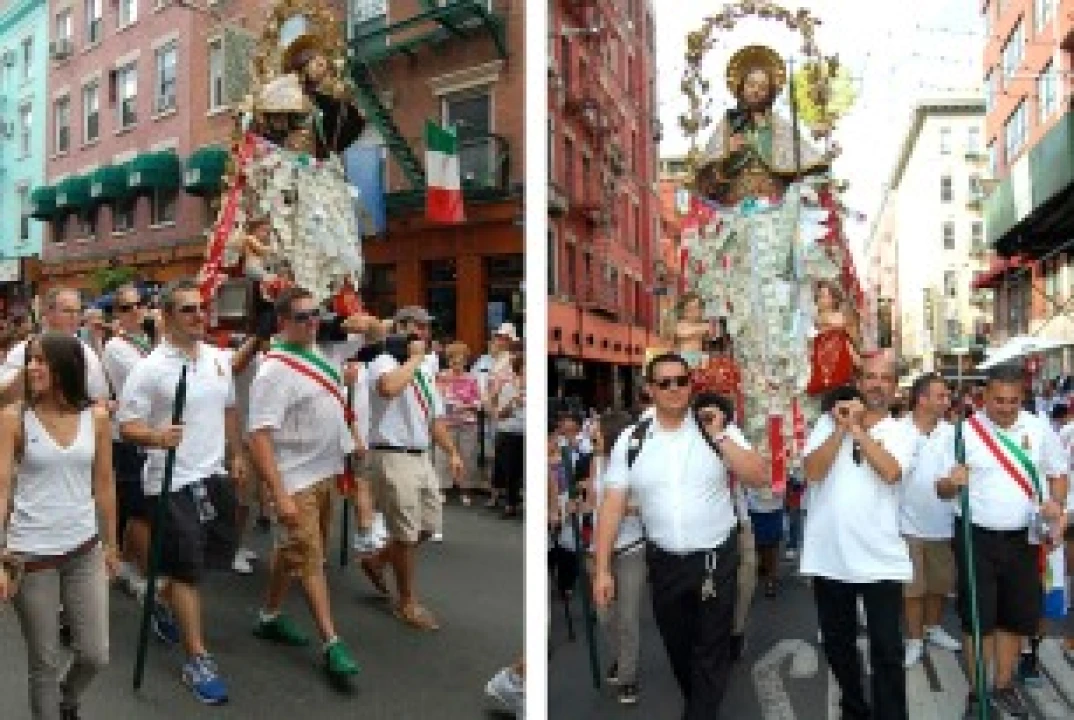 Last Sunday (August 17th) I had the great honor of participating in the 125th Annual Feast of Saint Rocco in New York City. Mass was celebrated in English and Italian with Father Joseph F. Lorenzo at Saint Joseph's Church on the corner of Catherine and Monroe Streets. To everyone's delight, the original papier-mâché statue with its new floral arch would be used in the celebration.