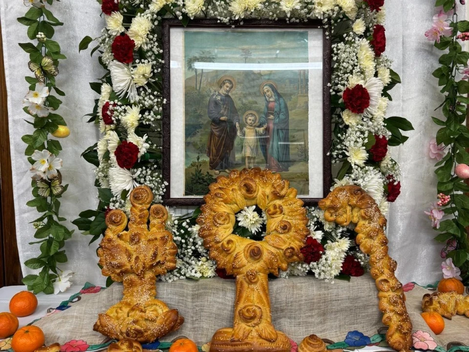 The celebration began at 2 PM, centered around a breathtaking altar - an extraordinary expression of faith and craftsmanship. Surrounding a large framed image were intricate bread sculptures, true works of art shaped into flowers, the staff of Saint Joseph, the cross of Christ, and candelabras. These symbolic creations, deeply rooted in Sicilian tradition, were lovingly crafted by the skilled hands of Letizia Di Maria, Rosaria Palazzolo, and Rosalia Palazzolo, with the support of Antonella Palazzolo, Francesca Palazzolo, and Antonella Di Maria.