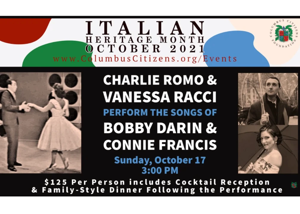 Cari Amici, Celebrate Italian Heritage Month at the Townhouse throughout October. Join us on October 17th for a throwback to a Golden Musical Era with Charlie Romo & Vanessa Racci performing the songs of Bobby Darin and Connie Francis. Columbus Citizens Foundation | 8 East 69th Street, New York, NY 10021