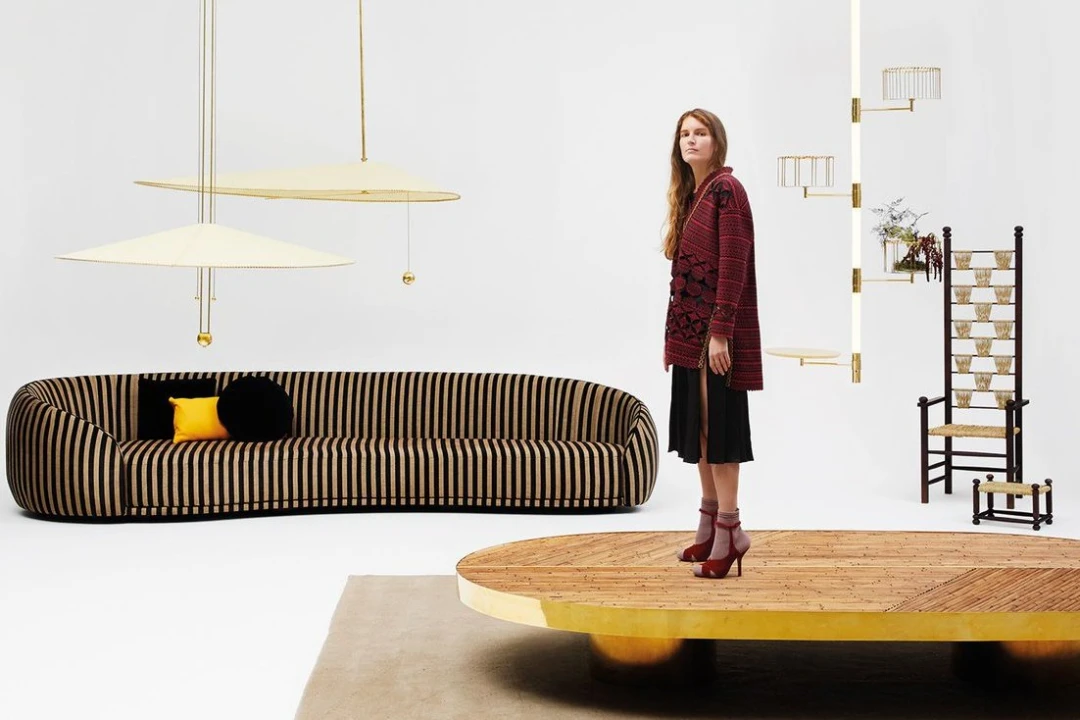 The ideas of countrified luxury and elegance underscore the collection Andreatti has developed for Fendi. She was also inspired by the designs of Gabriella Crespi, the enlightened middle class of the 1970s, and pioneering female adventurers of the early 20th century. Andreatti has drawn on many elements that form the core of Fendi and has transferred them from fashion to domestic design.