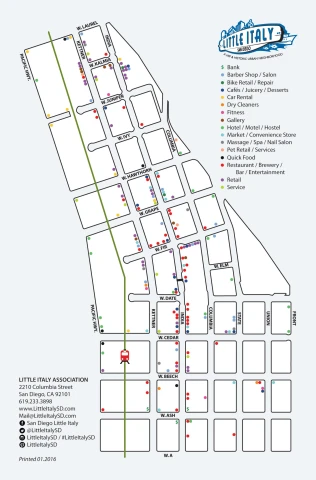 Ora abbiamo il posto, il finanziamento stabile e indipendente, e una società che gestisce il distretto imprenditoriale. La mia azienda, New City America, è quella che ha iniziato questo processo 20 anni fa e attualmente gestisce la Little Italy Association di San Diego. New City America è una società privata che viene ingaggiata dagli enti no-profit per sovrintendere a tutti gli elementi della Little Italy. Negli ultimi 20 anni, ho visitato molte Little Italys in tutti gli Stati Uniti e molti altri distretti commerciali, per capire cosa stanno facendo bene, cosa stanno facendo male e usare ciò che ho appreso per migliorare la Little Italy di San Diego. Dai miei viaggi in Europa e in particolare in Italia, ho potuto vedere cosa hanno fatto e poi ho potuto applicare quegli esempi qui a San Diego. Quando furono progettate le città italiane, furono tutte costruite intorno alle piazze: e abbiamo preso questa idea perché anche molte città degli Stati Uniti furono costruite attorno alle piazze, ma non in California non molto, perché la California è decisamente più giovane.