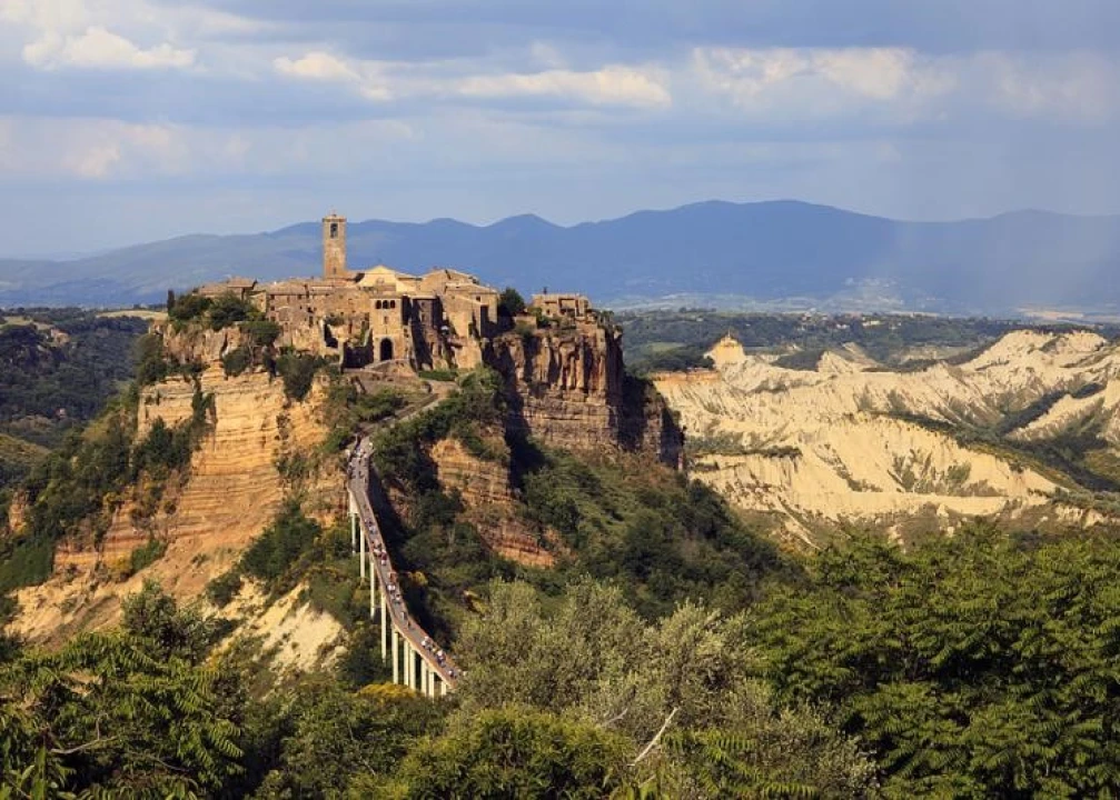 Surrounded by steep ravines (known in Italian as ‘calanchi’), Civita is about 120 km (75 mi) north of Rome, in the area of Lazio known as Tuscia near the border with Umbria.