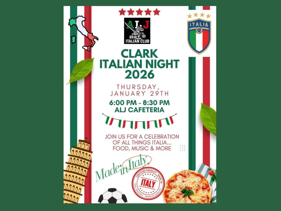 The Clark Public School District is excited to announce its upcoming Italian Night, a festive community event that will showcase Italian culture through student-led exhibits, food, music, and interactive learning on Thursday, January 29, at 6 p.m. in the Arthur L. Johnson High School cafeteria.