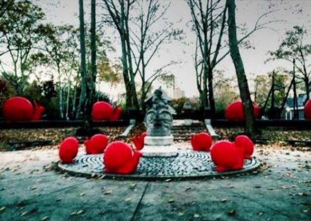 Eight Giant red snails have been placed around the famous monument created by Italian sculptor Gaetano Russo, erected as part of New York's 1892 commemoration of the 400th anniversary of Columbus' landing in the Americas. Curated by owner and director of Galleria Ca' d'Oro, Gloria Porcella, the exhibition will last through January 6th, 2014.