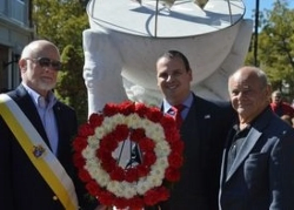 "Montazzoli has long had a Piazza Scotch Plains, so our proclamation of Montazzoli Plaza here in Scotch Plains is long overdue," said Mayor Glover. The celebration included Italian music, and a wreath-laying ceremony in front of the Christopher Columbus monument outside the Scotch Plains Municipal Building on Park Ave. Giovanni Young-Annunziato, a 7th grader at St. Bart's Academy, read his winning essay from the 2015 Columbus Day essay contest.