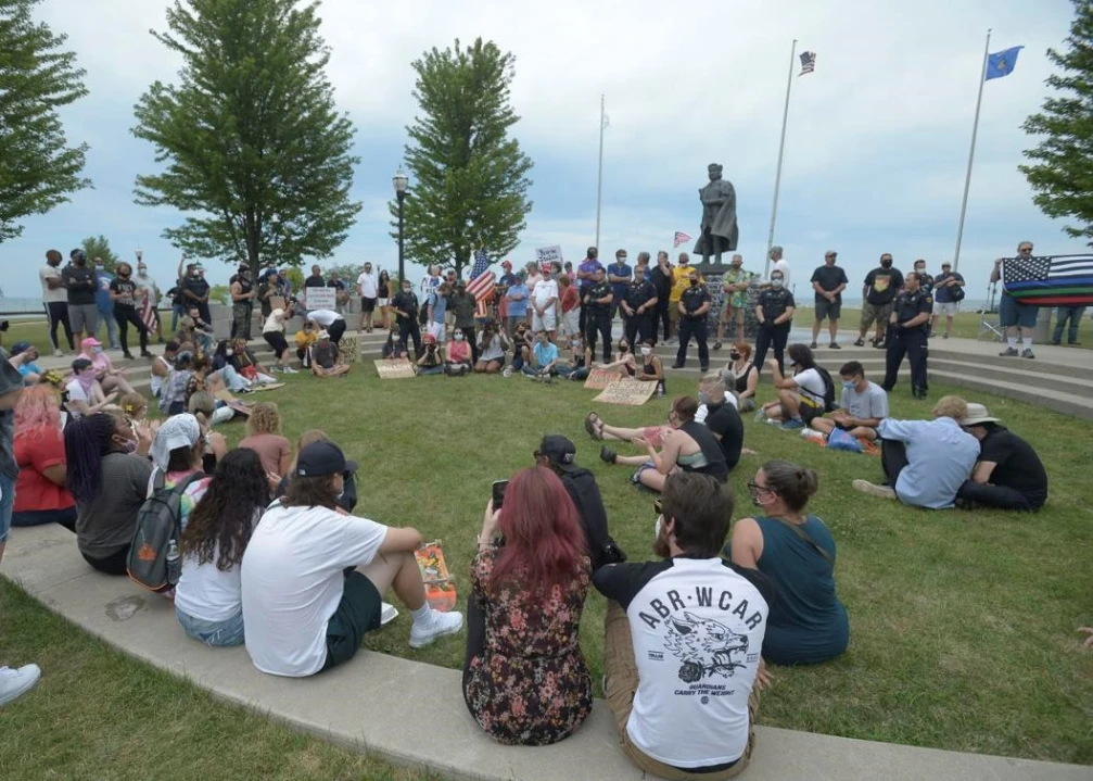 The Kenosha Activism organizers—three local high school students from Indian Trail High School and Academy—had planned a march titled ”Justice for Indigenous People’s Protest” for the removal of the Christopher Columbus statue in HarborPark and to urge educators to revisit the teaching of the history of Columbus.