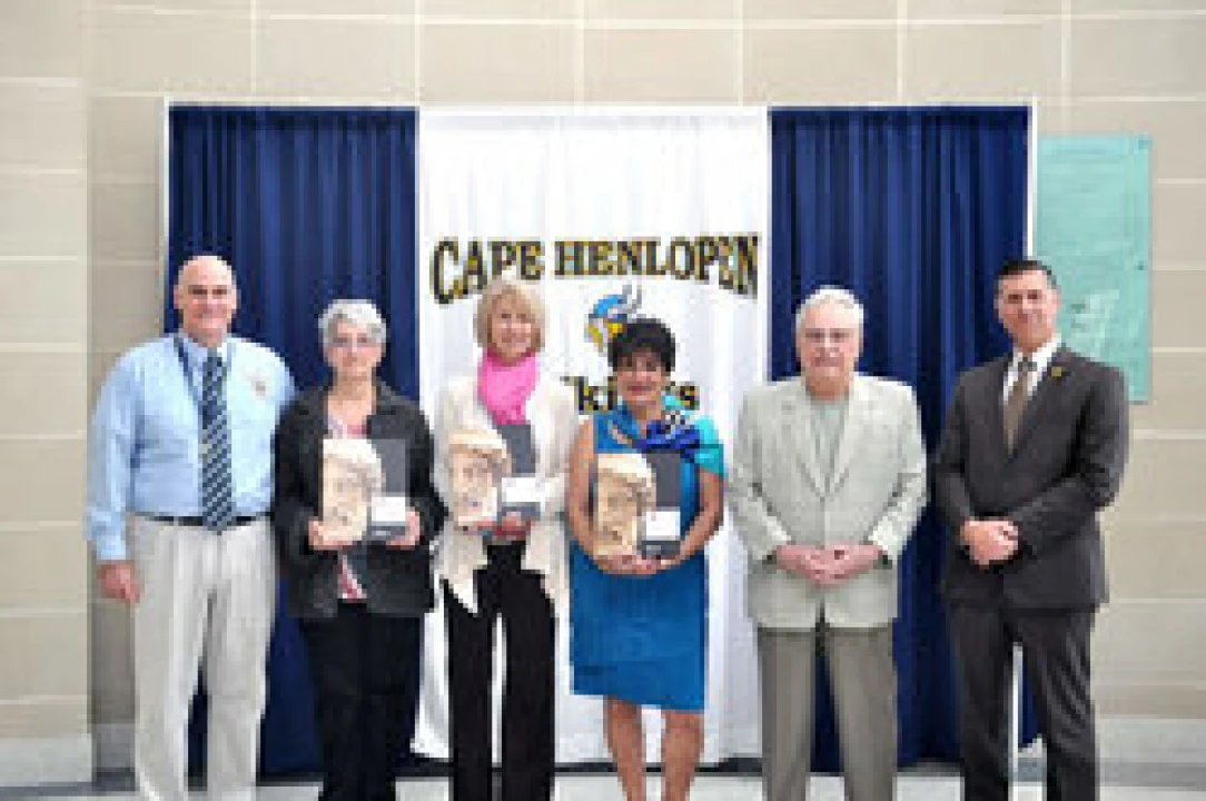 Nicholas Caggiano, commissioner of the Delaware Commission on Italian Heritage and Culture, and Maria Teresa Morrison, representative of both the commission and UNICO, donated copies of a book on recovered Italian art to Cape Henlopen High School's Italian students and to the main CHHS library.