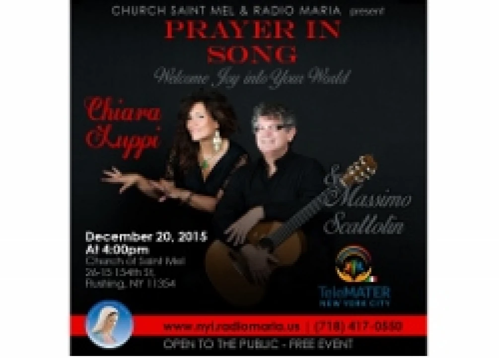 Cari amici, anche quest'anno siamo lieti di ospitare a New York la straordinaria cantante italiana CHIARA LUPPI e il suo ospite speciale MASSIMO SCATTOLIN per un Concerto di Natale intitolato "PRAYER IN SONG Welcome Joy into Your World". Chiara e Massimo presenteranno canzoni natalizie tradizionali, sia in italiano che in inglese, e arrangiamenti originali di preghiere. L'EVENTO E' GRATUITO. Donations welcomed