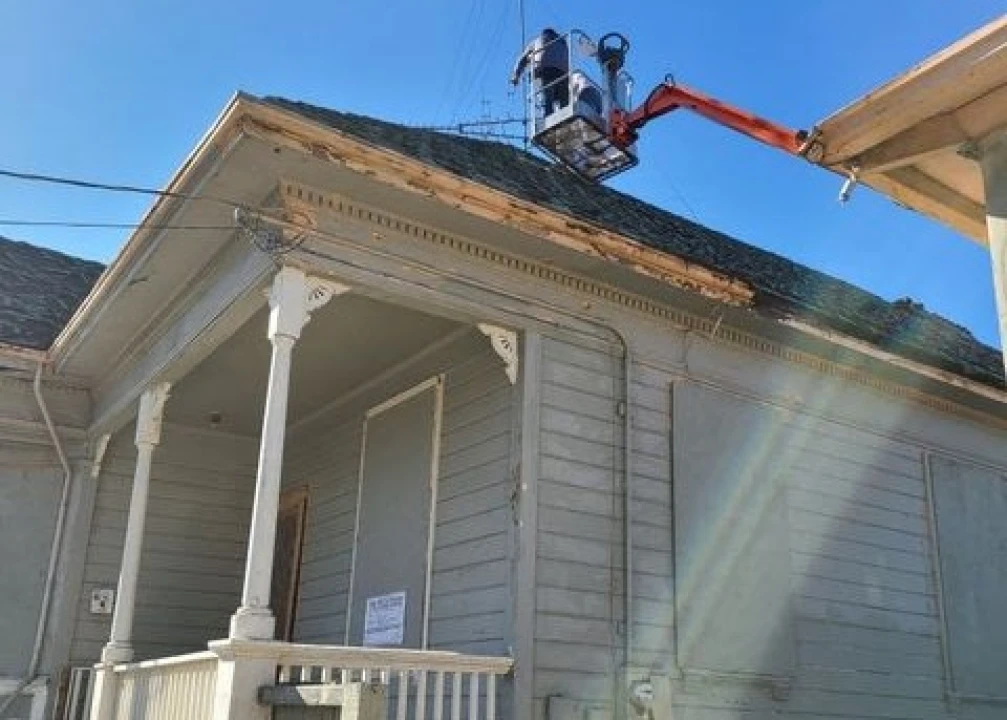 Construction has begun on site at our Little Italy San Jose Cultural & Museum! Demo around the perimeter, chimney and basement is underway in preparation for the home lifting and foundation work for the "Italian Cellar" basement bar. Also got the massive antenna taken down.
