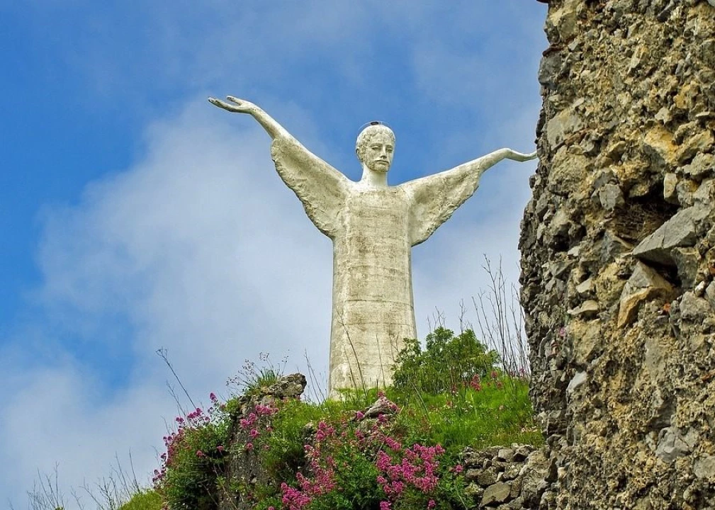 Unknown to many, the statue of Christ the Redeemer of Maratea is the tallest sculpture in Italy. With a height of over 70 feet (21 meters), it’s one of the tallest statues of Jesus in the world. Before the statue, a memorial iron cross had stood atop the mountain since 1907. But it was often hit by lightning and subsequently damaged, so it was replaced in 1941 by a concrete cross.