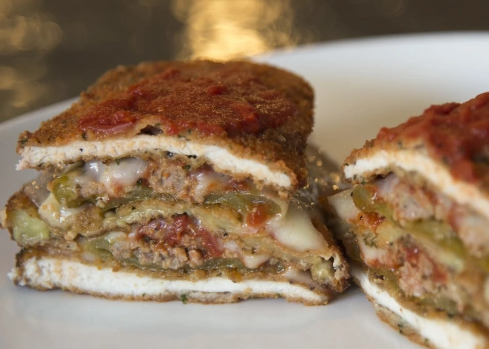 A big 12-ounce veal chop  gets pounded thin and breaded crisp for a deluxe veal Parm upgrade. But for the indecisive who cannot really choose – chicken? veal? vegetarian? – the cutlet is a worthy adventure. Would it be too much, though? Two chicken cutlets wrapped around an eggplant cutlet oozing with melted provolone and two inner layers of sausage-stuffed long hot peppers sounds like just the kind of gimmicky contraption I’d normally resist.